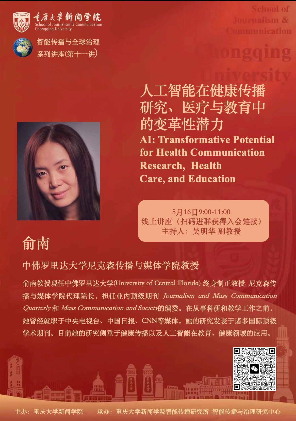 主讲人:俞南 教授 5月16日9:00-11:00 线上讲座(扫码进群获得入会链接)