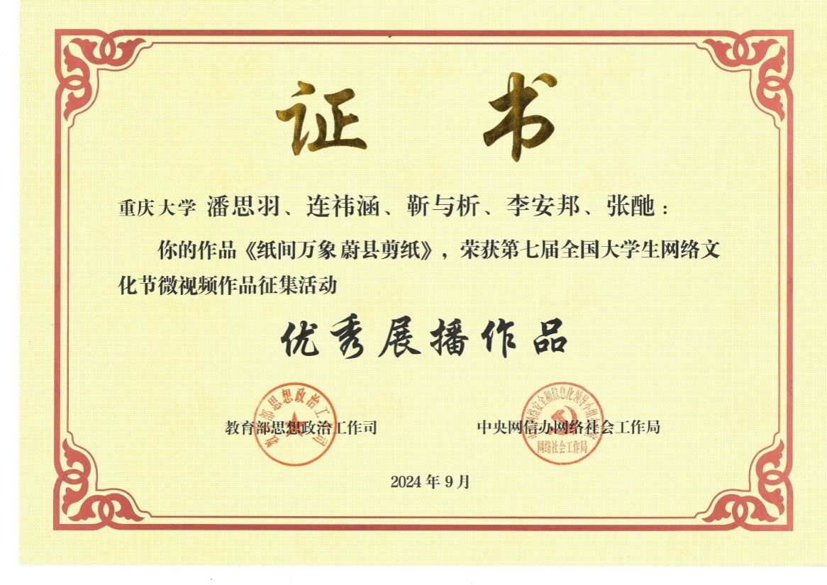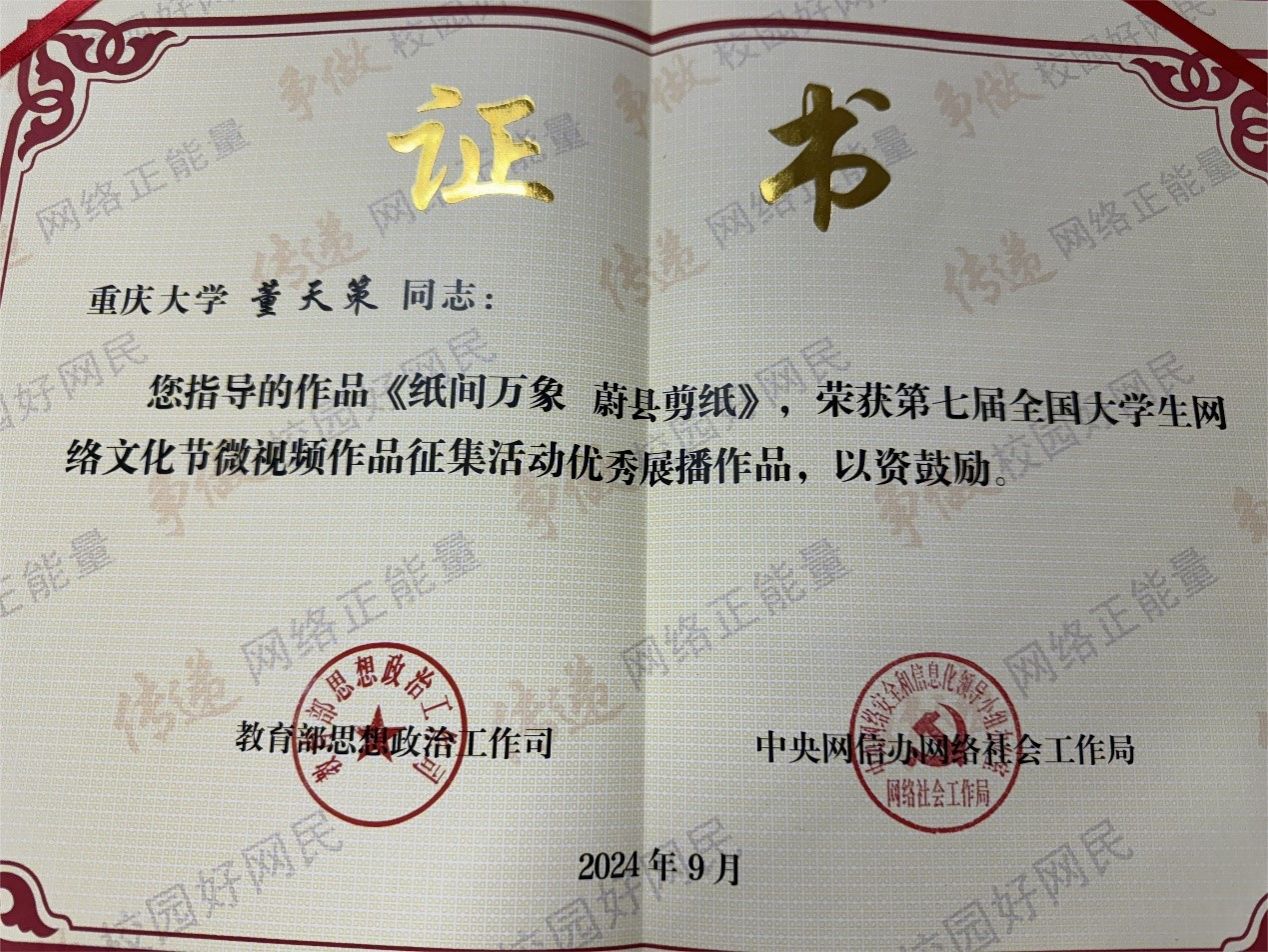 董天策教授获指导老师奖,新闻传播学2023级硕士生潘思羽等同学的作品从全国31个省(区、市)和新疆生产建设兵团所推荐的50771件作品中脱颖而出,被评为优秀展播作品。