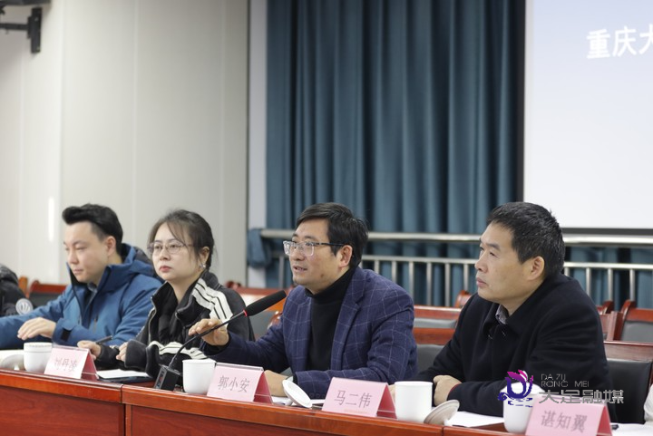 新闻系主任、智能传播与城市国际推广实验室副主任刘丹凌,全媒体传播研究所所长、智能传播与城市国际推广实验室副主任马二伟,国际传播研究所所长郭毅及部分专业教师。他们就助力大足打好国际传播“特色牌”、内容生产协作等校地合作事宜提出意见建议。
