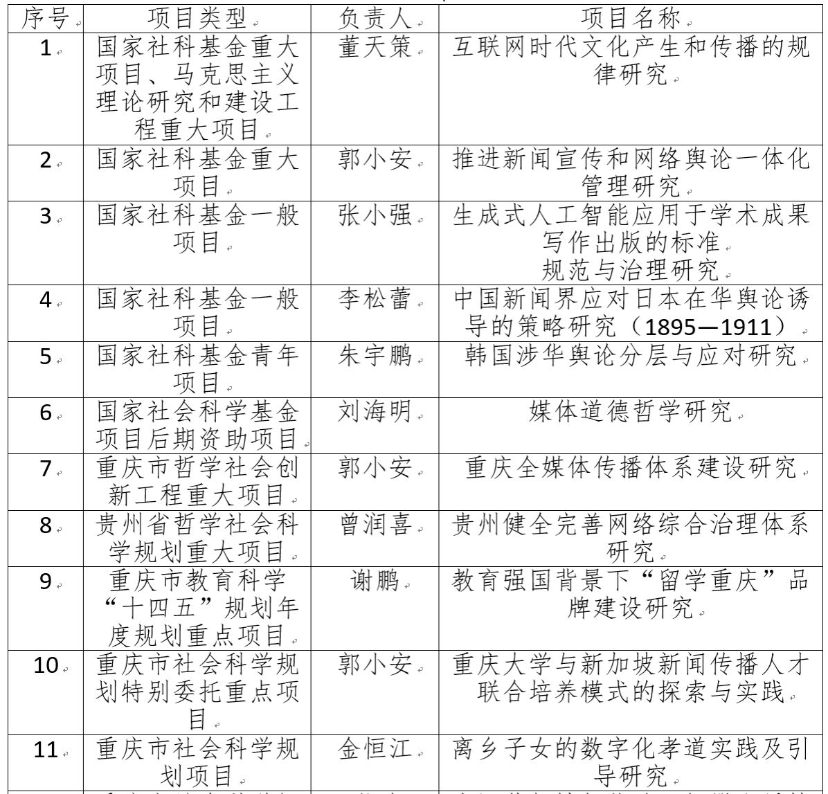 出版研究院入选部校共建出版研究院;智能传播与城市国际推广实验室获批重庆市首批哲学社会科学重点实验室。