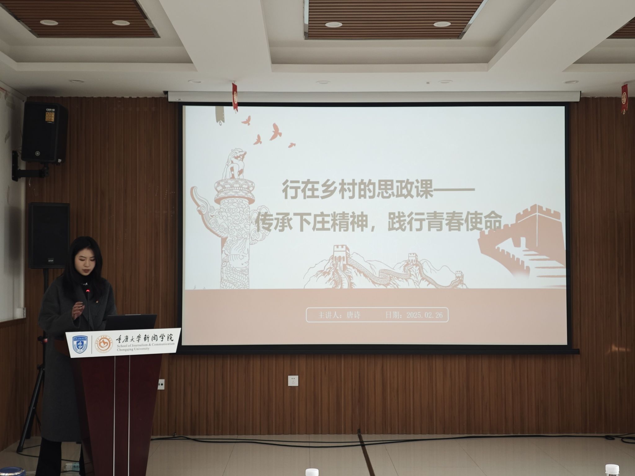 研究生四支部书记唐诗同学以《行走乡村的思政课——传承下庄精神,践行青春使命》为题为党员授课。