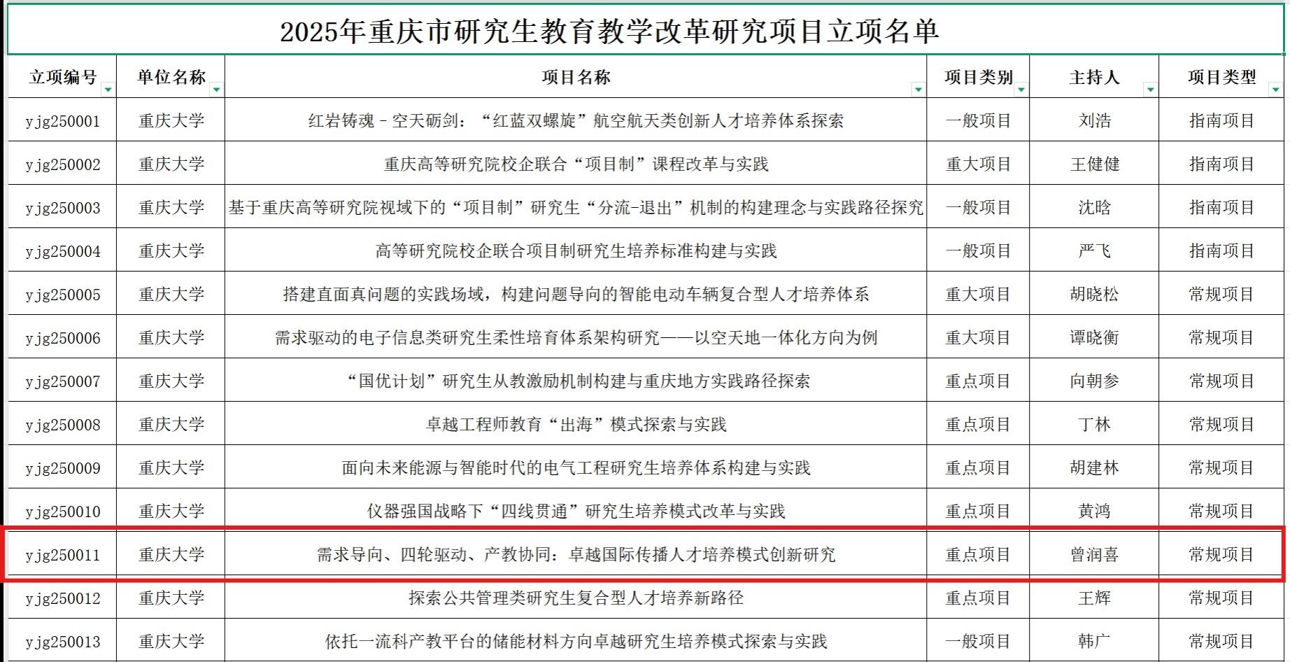 近年来,学院积极响应国家推动研究生教育高质量发展的战略部署,持续深化教育教学改革。此次多项研究生教改项目的成功立项,是学院服务国家国际传播能力建设、主动适应智能时代发展趋势、推动学科交叉融合与人才培养创新的重要体现。未来,学院将以此为契机,进一步加强有组织教研,推动项目成果转化为高质量育人实效,为构建中国特色、世界水平的研究生教育模式贡献更大力量。