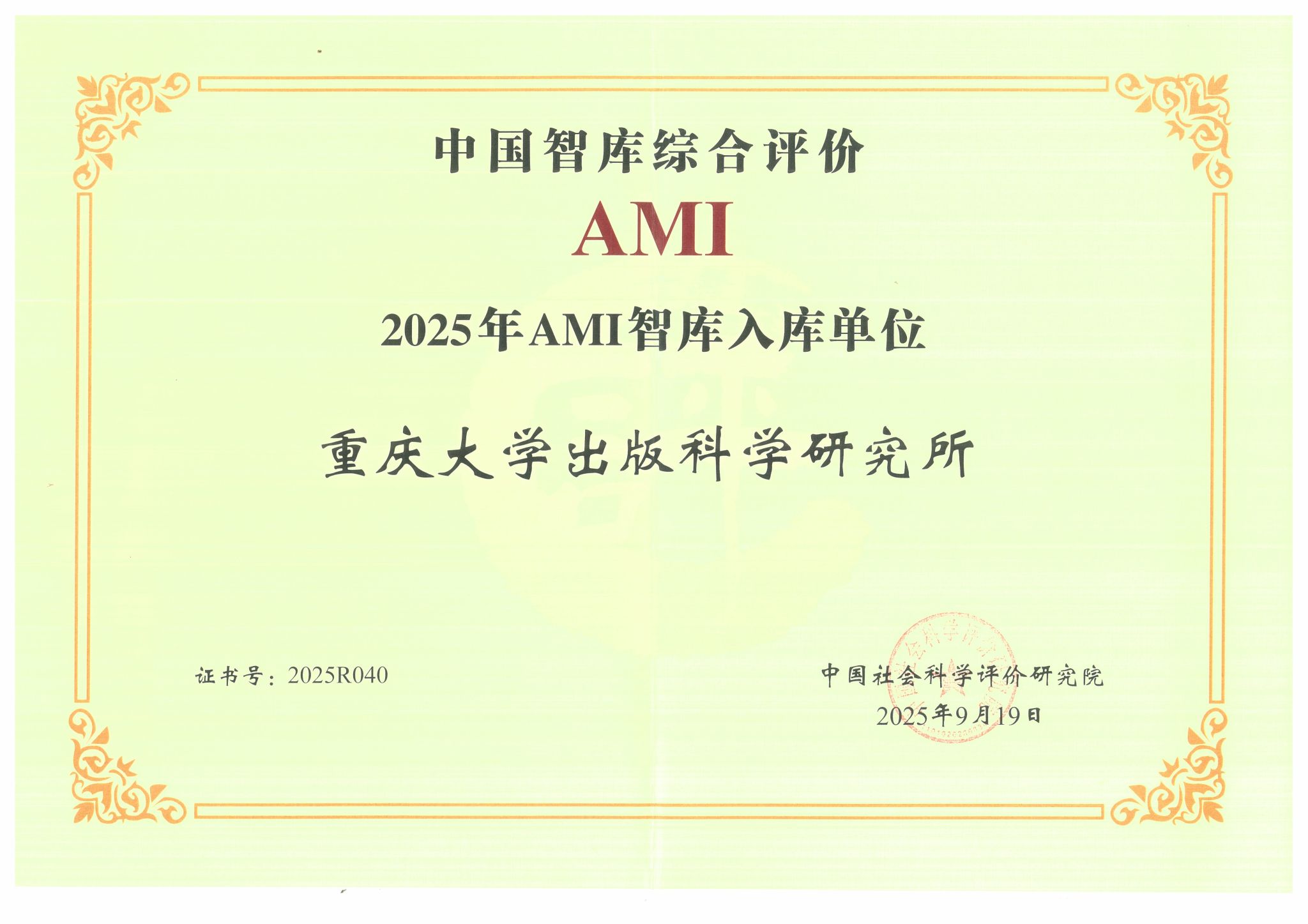 出版科学研究所正式入选“中国智库综合评价研究项目2025年AMI智库入库名单”。