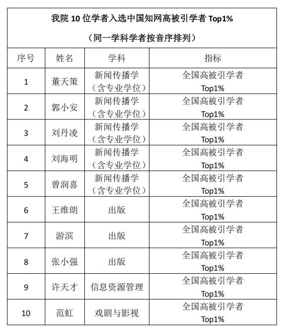 共有17位学者入选,其中10位学者入选“2025全国高被引学者TOP1%”,7位学者入选“2025全国高被引学者TOP5%”。