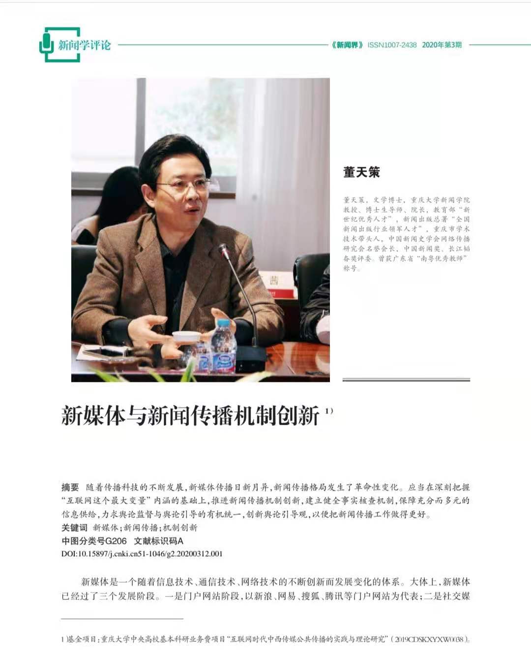 董天策教授《新媒体与新闻传播机制创新》获新闻论文一等奖。现全文发表,以飨读者。
