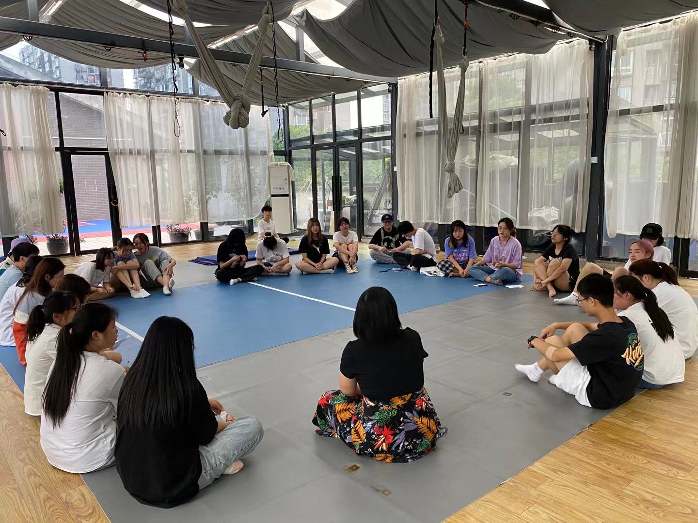 大家走进教室,围成一个大圆坐在了一起。为了活跃气氛,拉近与同学们的关系,老师提议同学们先来玩一个游戏。游戏规则是先由一个人提问另一个人:“你喜欢我吗?“,大家将依据另外一个人的回答交换位置,最后没有找到位置的那个同学将充当提问的人。弄懂了游戏规则,游戏就正式开始了。伴随着紧张与刺激,第一轮游戏结束了。气氛也逐渐升温,同学们开始相互交流,和老师也有了更多互动。游戏总共进行了四轮,到最后,大家已经开始热烈讨论起来游戏中的细节,和老师的关系也进一步亲密了起来。
