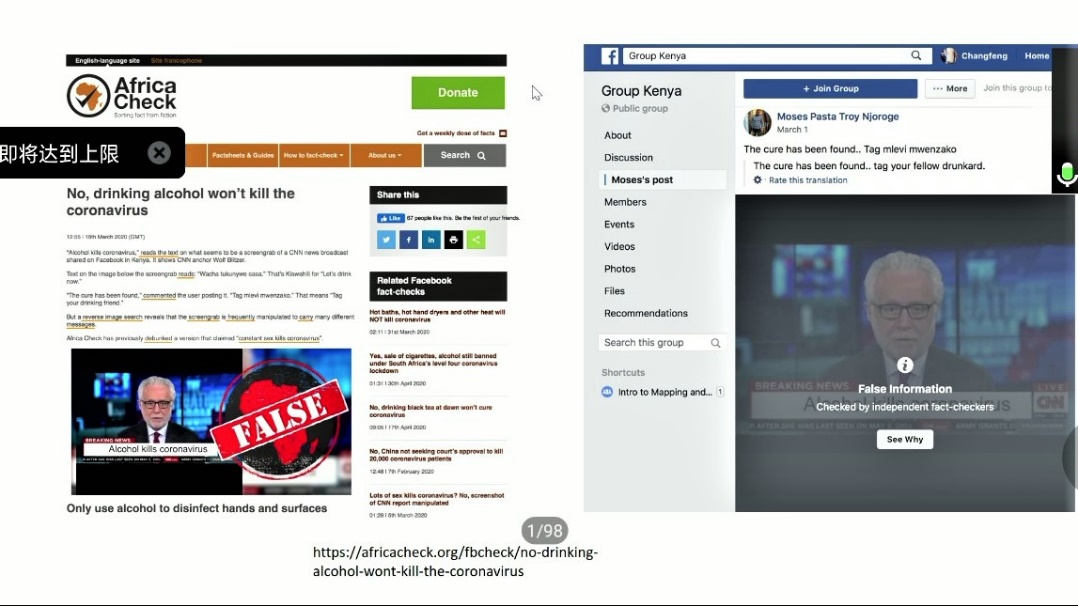 结合疫情期间的传播失范现象,陈昌凤教授认为,当前部分媒体存在着以断章取义、人云亦云为表现形式的信息失实问题以及缺乏专业认知的造谣、传谣行为,究其缘由, 是缺乏对现象的追问和反思。新闻报道的真实性需要通过事件本身及相关因素的反复调查、核实来实现。加强对现象的追问和反思,以及对相关因素的关联和审视,有利于更清晰、精准地发掘事物表象背后更有深度和广度的真实故事,从而避免假新闻的出现。此外,在回顾国内外部分引起争议的报道之后,她以Facebook为例,列举出疫情期间Facebook积极应对虚假信息,核实事件揭露假新闻的相关措施,揭示社交平台在面临信息全球化挑战时,如何坚守伦理规范,保障用户可以获取权威可靠的信息和资源。