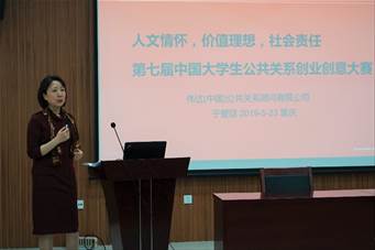 “比别人多想一点,比别人准备更充足一点”。于爱廷女士还向大家分享了参加大学生公关创业大赛的经验。她强调,“对外沟通要春风化雨,‘润物细无声’,要讲述自己内心认可的逻辑,不要背诵文本”。于爱廷女士鼓励大家积极参与到本届大学生公关大赛中,实现自我的蜕变。