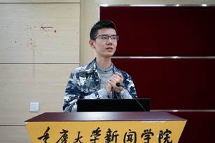 2016级本科生廖元植总结了香港浸会大学传理学院教与学的特点,并强调了实践精神的重要性,“敢想敢问、多写多做”是他的分享发言中最常提到的关键词。通过比较传理学院学生的学习特点,他还谈到了自己的一些感想和反思,希望学习新闻专业的同学们都能够勤奋学习,辩证思考,冷静批判,敢为人先。