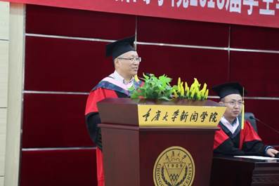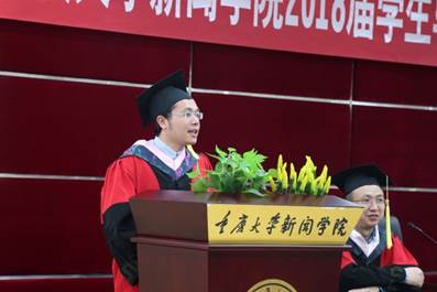 马胜荣院长在典礼上首先致辞。他为同学们提出两点建议,一是要不断拓宽视野,二是用求实用新的精神对待问题。他用自己的亲身经验和知名研究机构的调查,号召同学们努力成为“顶尖记者”。“希望同学们在任何情况下都能有自我发展的原则、动力、决心,不要期望一切都一帆风顺——碰到困难时要有勇气,顺利时要谨慎、冷静,不辜负自己、社会和国家。”马院长总结说。