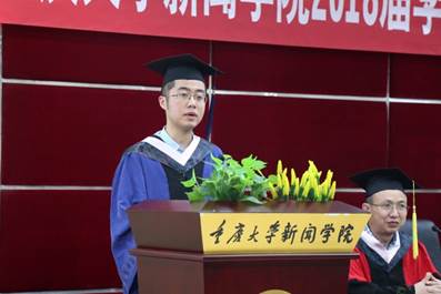 的印象,庆幸自己虽身处新兴学院,但获得了巨大的鼓励与支持,使自己能发展新闻评论的写作爱好并有所收获。郑壹同学回忆四年来的学习与生活点滴,对辛勤付出的老师和团结互助的同学表达感谢与不舍。曾润喜老师对即将迈入不同行业的同学们分别提出建议,用幽默的语言告诉同学们要“德才兼备、以德为先”。
