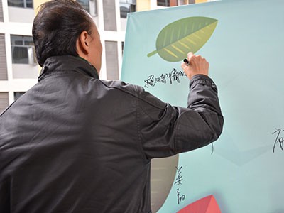 记者节展厅内签名、合影留念。