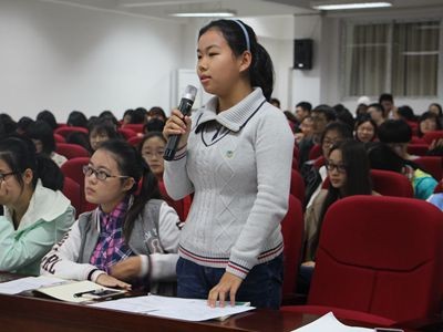 在提问环节,同学们从诗歌写作、传统文化的传承、古代职业等角度与王红教授进行了交流和探讨。
