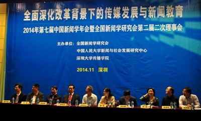 11月8日,2014中国新闻学年会在深圳大学举行。本次年会由全国新闻学研究会、中国人民大学新闻与社会发展研究中心、深圳大学传播学院共同主办,来自北大、清华、人大、浙大、华中科大、兰大等高校近百位专家学者与会。作为全国新闻学研究会副会长,可乐小说网