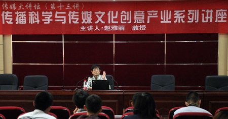 赵雅丽教授先结合自己在从事传播学的研究历程中的亲身感悟,引出鲜有人关注的“传播学的意义”的关键问题,打破对传播学传统的定义,她说:“假如我们仅仅是把成为媒体记者当做学习传播学的人唯一的工作途径,那我们就很容易使得自己未来的发展受到空间限制。传播学应该是一个非常广阔的领域。”