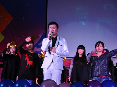 院长董天策送上了新年祝福,他风趣地说:“看了今天大家的表演,用一句话讲,我的心情是‘羡慕嫉妒恨’,羡慕大家的年轻与活力。”然后,董院长朗诵了一首《沁园春?长沙》,作为给大家的新年礼物。董院长饱满的感情与儒雅的风度博得了大家持续不断的掌声,不少同学在台下大喊“董院长男神!男神我们爱你!”