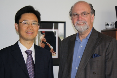 (董天策院长与加州州立大学福勒顿分校传播学院William Briggs院长合影)