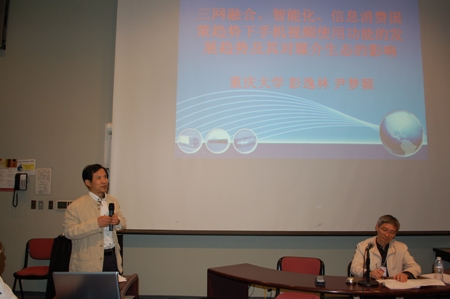 董天策、彭逸林两位教授出席论坛,分别发表了题为《传媒政策的时代性及其文化观念的调适》、《三网融合下手机视频的发展趋势及其影响》的论文报告。
