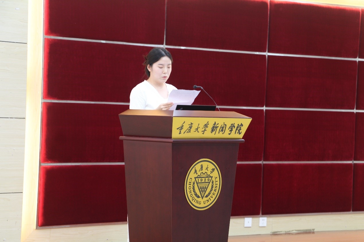 三位获奖学生代表分别作了交流发言。18级广播电视学专业单倩澜同学是媒体实践优秀奖本科生获奖代表,她表示,感谢大学生活的锤炼,正是自己勇敢走出校门,通过接触不同的人物,听到不同的故事,才见识到了更多不同的风景。从事媒体工作,除了遵守最基本的职业道德,也要具有人文关怀,做记者需要理性地思考,适当地表达。