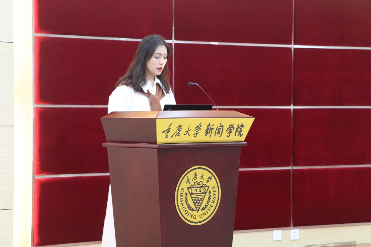 20级新闻与传播专业硕士研究生张鲁玉代表媒体实践优秀奖研究生获得者发言,她重点分享了在媒体实习期间的经历和感悟。她认为,由于新闻专业的实践性质,新闻学子只能通过自己的经历,去发掘、理解自己的兴趣和将来要从事的事业。她建议大家要提早规划,在实习和学习之间取得平衡。