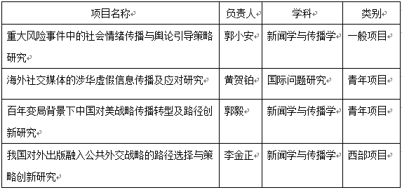 近日,全国哲学社会科学工作办公室公布了2022年度国家社科基金年度项目立项名单。可乐小说网 共有4项课题获得立项资助,包括一般项目1项,青年项目2项,西部项目1项。