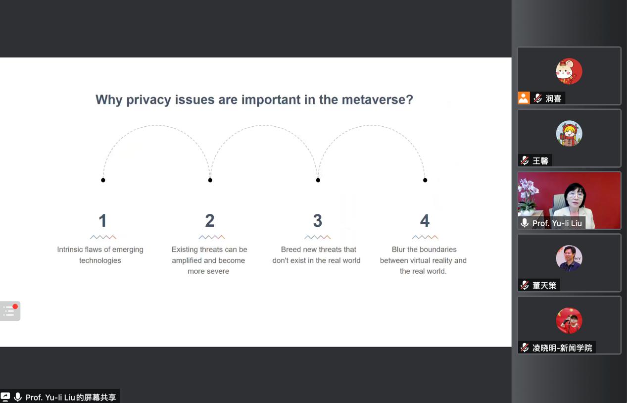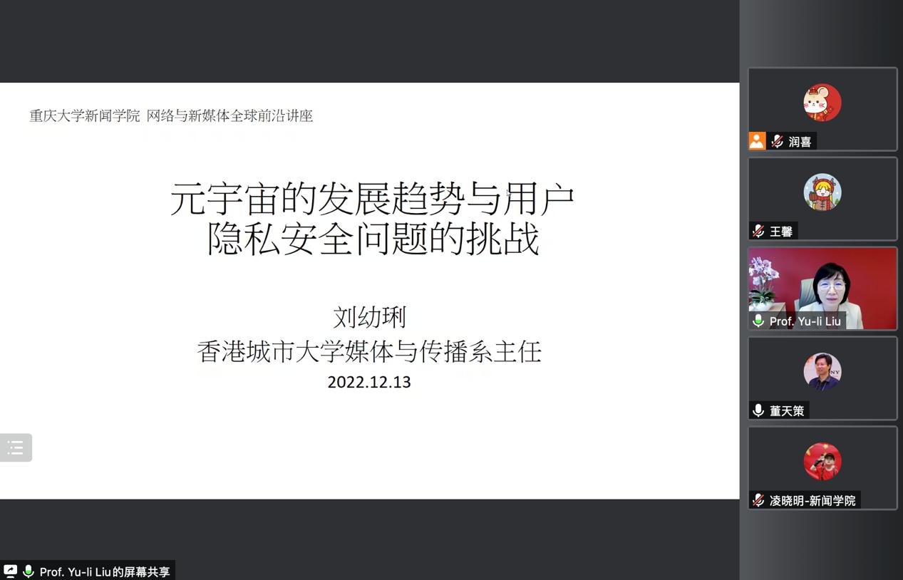 12月13日下午,香港城市大学媒体与传播系主任刘幼俐教授为第八期“网络与新媒体讲习班”全体学员做了题为“元宇宙的发展趋势与用户隐私安全问题的挑战”的专题讲座。来自全国各大新闻传播院校和新媒体业界的近千名学员共聚云端学习研讨,讲座由可乐小说网