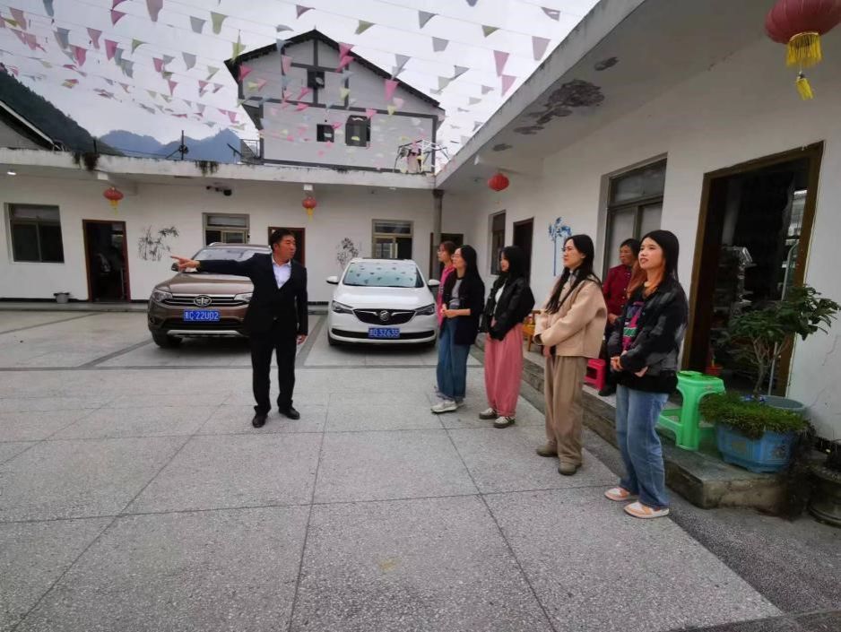 实践队首先来到贵州省遵义市汇川区板桥镇进行实地调研。板桥镇娄山关社区地处红色旅游景区娄山关脚下,2021年3月被贵州省委组织部确定为全省首批红色美丽村庄建设试点。实践队参观了当地发展红色旅游打造的红色农家书屋、精品民宿、特色餐饮、非物质文化遗产板桥藤编等新业态,实地调研当地的农产品销售中心;访谈了当地小微企业家,了解乡镇小微企业是如何在党的带领之下从解决生存问题逐渐演变为思考发展问题的历程,感受到乡村振兴战略在乡村开花结果的历史性意义。