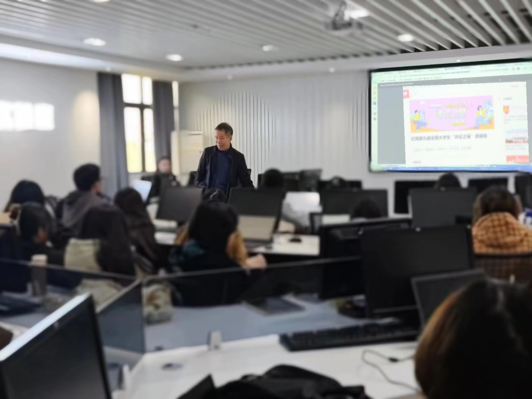 学生介绍了评论大赛的相关情况,分享评论写作技巧,鼓励同学们深入思考时事问题,提升自己的专业水平与社会责任感。