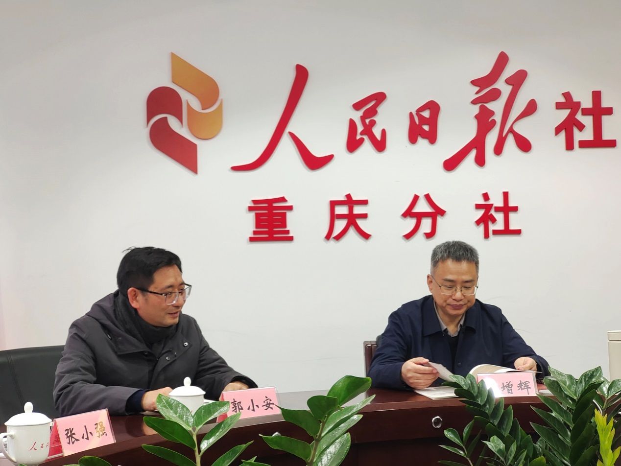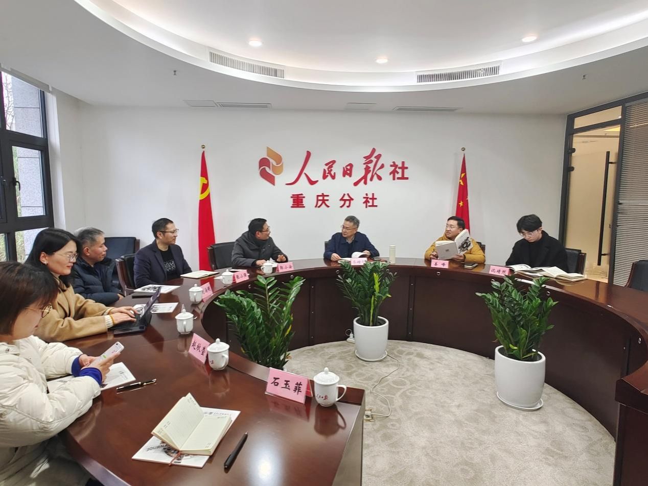 院长郭小安率队前往人民日报社重庆分社洽谈合作事宜。人民日报社重庆分社社长李增辉、采编中心主任姜峰以及记者沈靖然参与座谈。双方就科学研究、人才培养、产学研合作等议题展开深度交流。