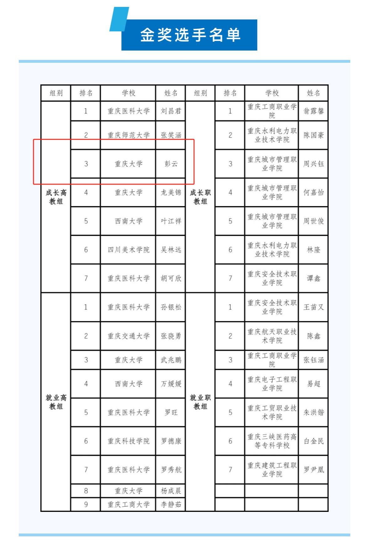 据悉,本次比赛获得金奖的优秀选手将代表重庆市参加教育部全国大学生职业规划大赛全国总决赛。