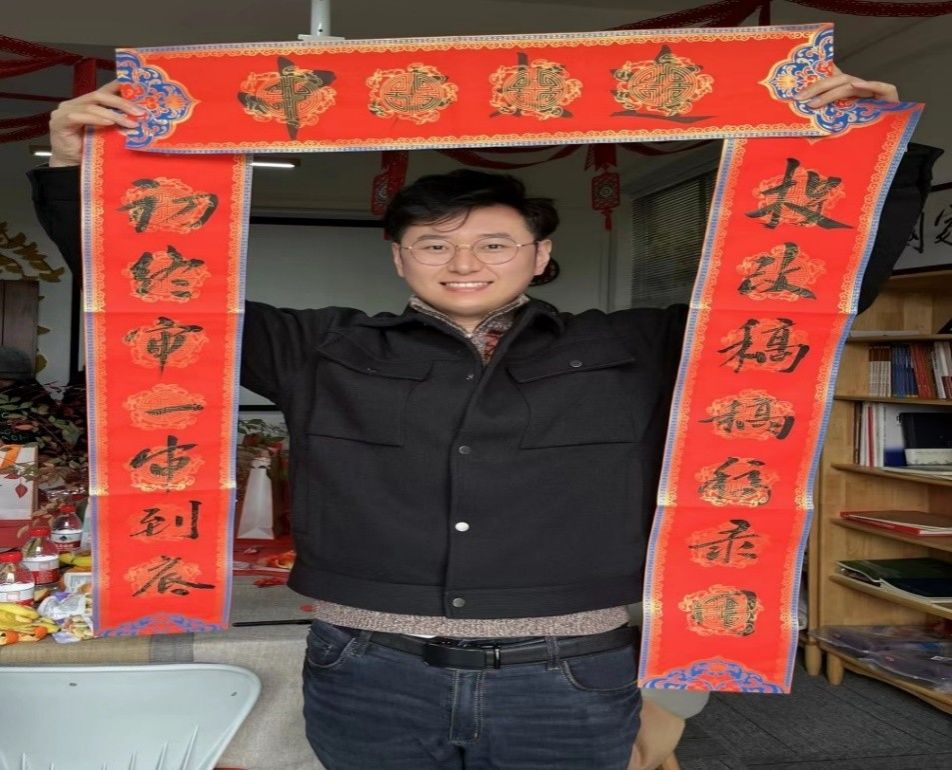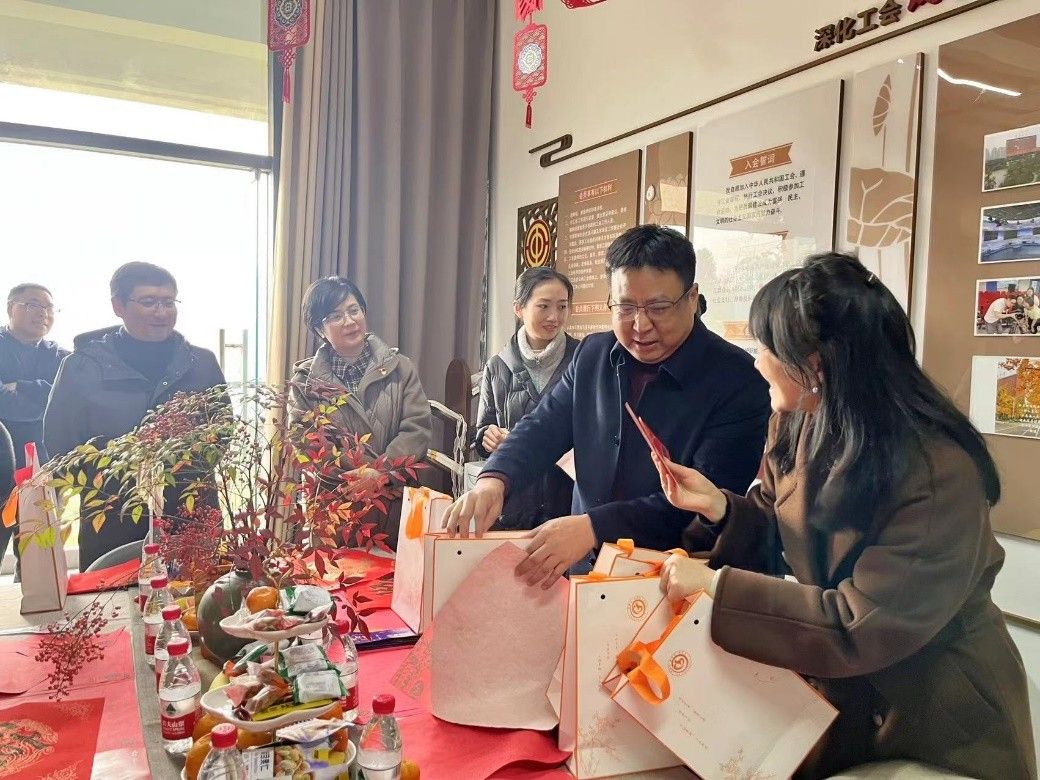 送贺卡、写春联、剪瑞龙、送福至在学院5楼工会小家热闹进行,学院党委书记凌晓明、院长郭小安和党委副书记陈娜一一为教职工们送上新春祝福。学院分工会主席魏媛、副主席李兴亮为老师们发放了新春贺卡和春联。这些贺卡、春联由学院老师们手书,内容是定制的个性化专属祝福。