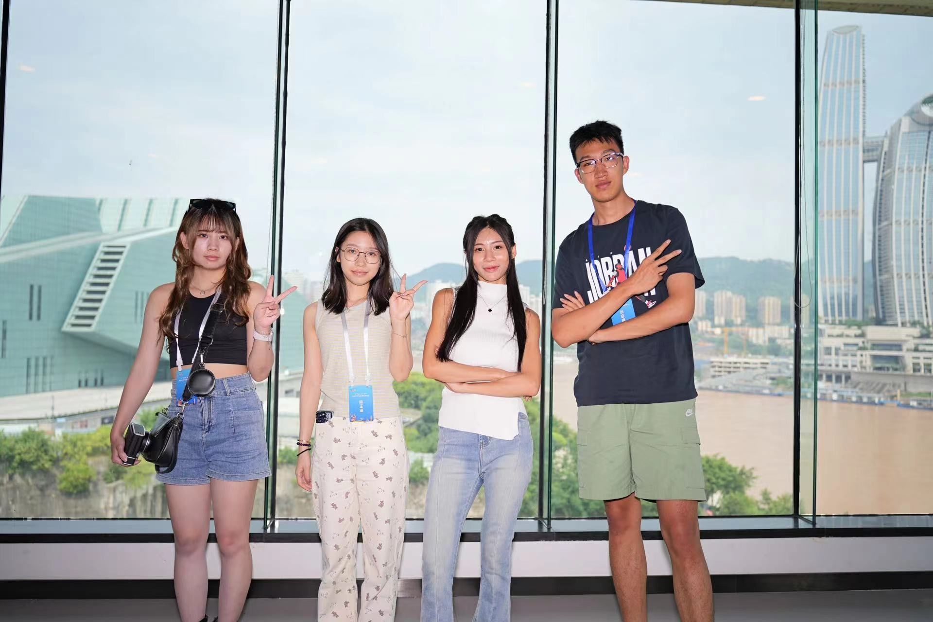 在两岸大学生新媒体创客营过程中,我们去往重庆建川博物馆、重庆抗战遗址博物馆、重庆市规划展览馆,回溯历史,展望未来,全方位感受重庆这座英雄城市的发展脉搏。我们漫步鹅岭贰厂,近距离体验重庆这座网红城市的绚烂魔幻,细嗅山城的青春气息。行越千里,“渝”你同行。在重庆,可以拥抱嘉陵江边习习的晚风,观赏南滨路的落日余晖,乘坐叱咤于大街小巷的黄色“法拉利”或是穿行于大江大桥山城楼宇的轨道交通,领略望而生畏的梯坎以及之上无比期待的风景。每一个重庆人、来过重庆的人、想要来重庆的人,都有自己的答案和想寻找的答案……组内的台湾同学小许和我说,初次来是为喜欢的偶像,这几天除了圆了自己的追星愿望,也切切实实感受到新时代“山水之城,美丽之地”新重庆的新发展新气象,满足了自己一直以来对中华传统文化的向往。两岸山河一脉,爱会穿越海峡。我和台湾小伙伴的交往日益密切,情谊也愈发浓厚,会在爬越梯坎时相互帮扶,会真心交流文化特色,会一起高呼“我爱重庆”表达爱意……重是重逢的重,庆是庆幸的庆。我们很庆幸作为中华儿女,相逢重庆,相约再见。