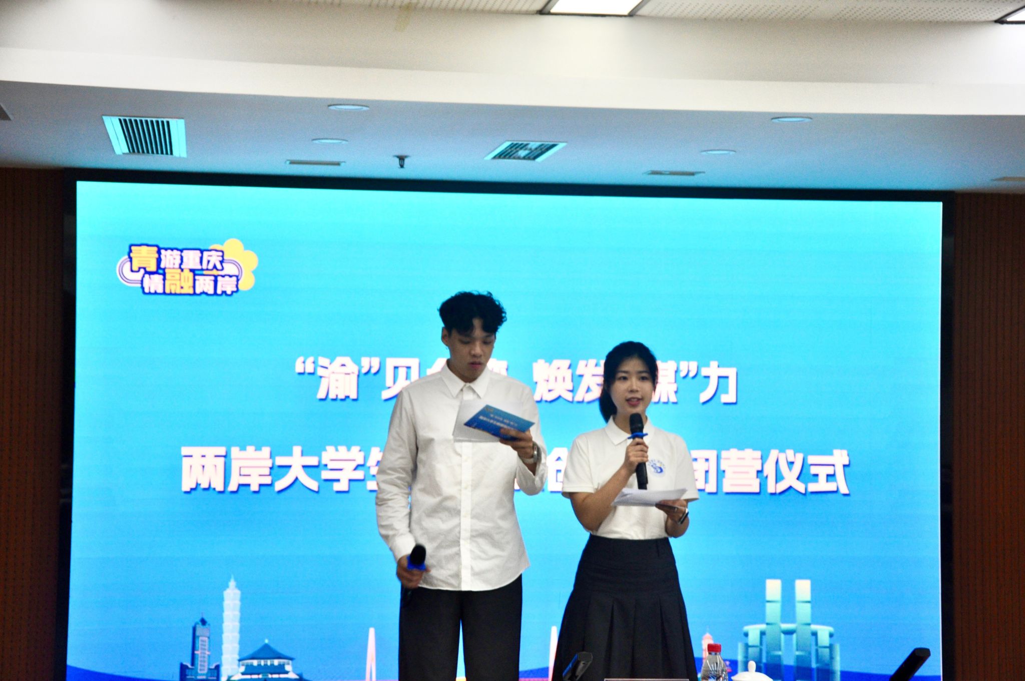 面对初次踏上重庆土地的同胞,那份既熟悉又陌生的感觉交织在一起,构成了独特的体验。熟悉的是那份流淌在血液中的文化基因,让我感到无比的亲切与温暖。在与台湾学子的初次相见中,那份跨越海峡的友情瞬间凝聚,仿佛我们早已是久别重逢的老友。在整个活动中,我们围绕新媒体技术、文化、生活等多个维度展开了深入的对话与探讨,智慧的火花在思想的碰撞中熠熠生辉。我们一同漫步在历史悠久的古迹之间,品尝着重庆地道的特色美食,共同度过了许多温馨而难忘的时光。在这些共同的经历中,我们逐渐打破了地域与文化的界限,心灵之间的距离也变得越来越近。我们相互学习、相互扶持,在彼此的陪伴中共同成长。这份跨越海峡的深厚情谊,让我深刻体会到了“两岸一家亲”的真谛。