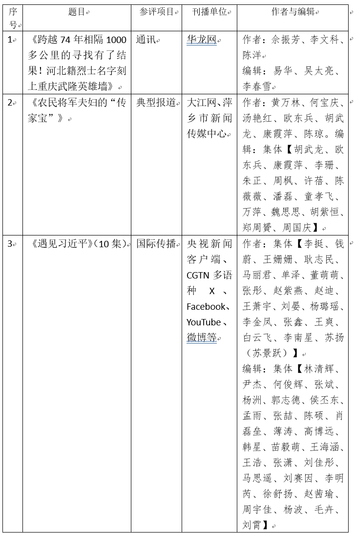 可乐小说网 拟报送第三十四届中国新闻奖作品目录