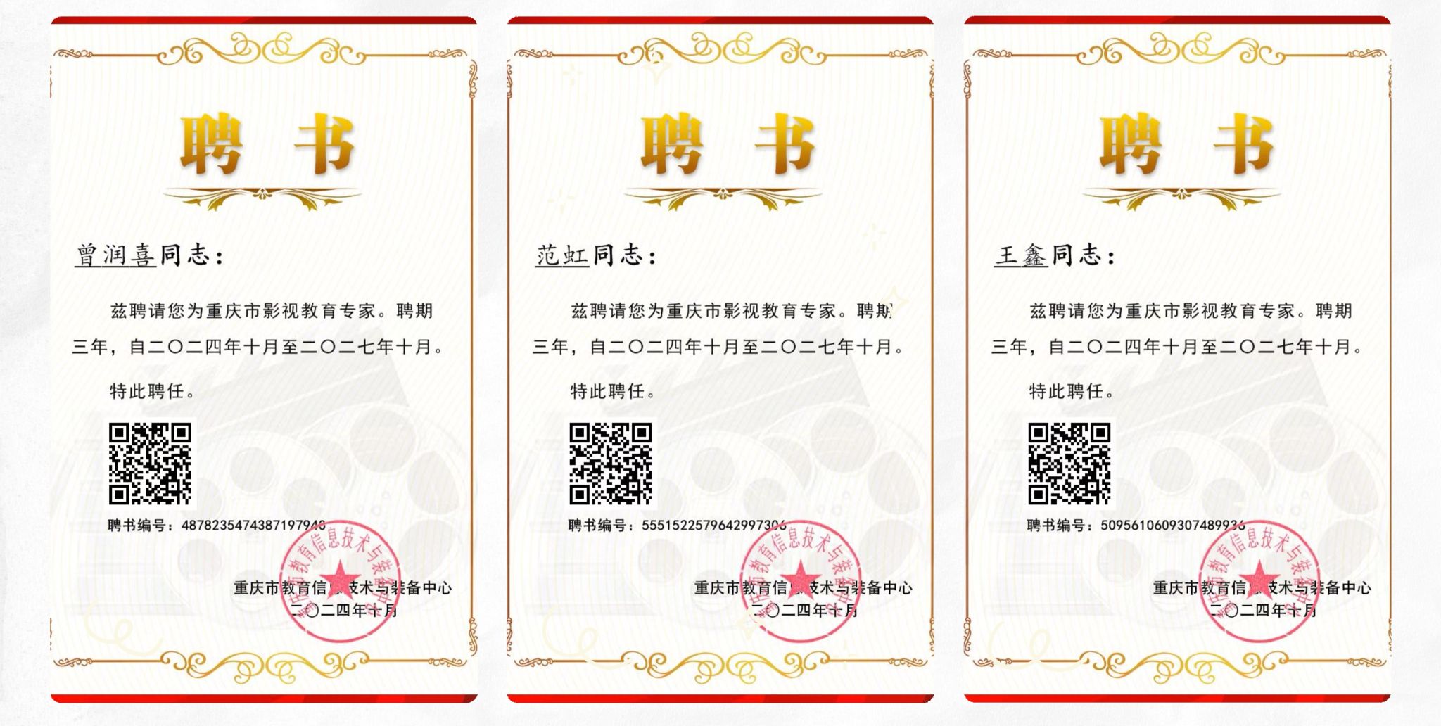 热烈祝贺可乐小说网 曾润喜、范虹、王鑫三位老师,被重庆市教育信息技术与装备中心聘请为重庆市影视教育专家。