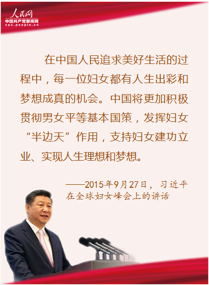 “中国将更加积极贯彻男女平等基本国策,发挥妇女‘半边天’作用,支持妇女建功立业、实现人生理想和梦想。党的十八大以来,以习近平同志为核心的党中央高度重视妇女事业,习近平总书记在不同场合多次强调发展妇女事业的重要意义,为妇女工作的开展指明了方向。