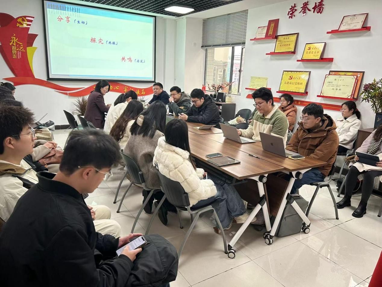 博士生党支部在学院党员活动室举行“研途铸魂”特色支部活动。学院党委书记凌晓明以“新思想引领新时代,新动力澎湃新使命”为题,深度结合党建与科研的密切联系,为博士生们带来了一场思想深刻、富有启迪的党课。党课由博士生党支部书记吴明华主持,博士生支部全体党员参加。