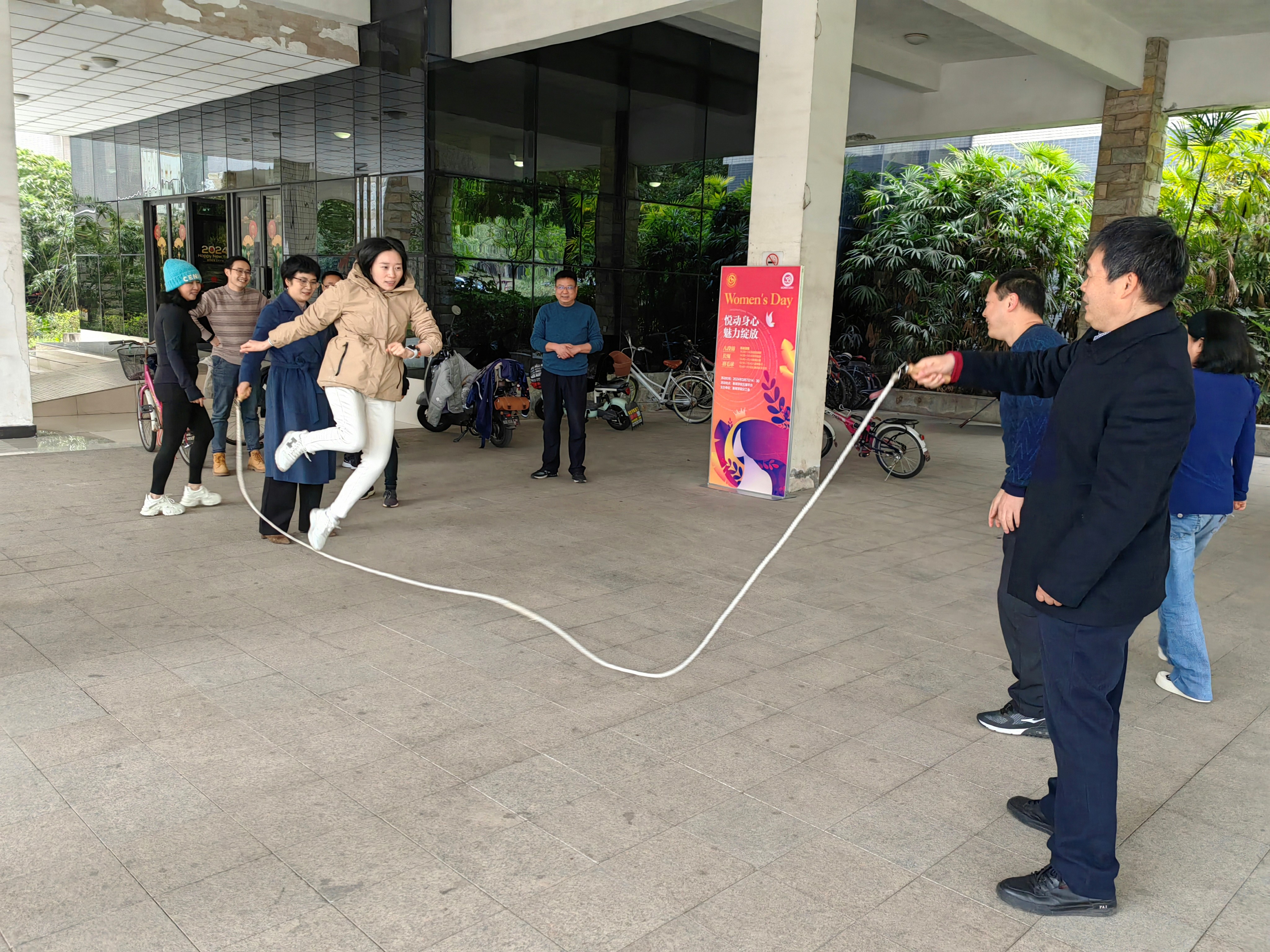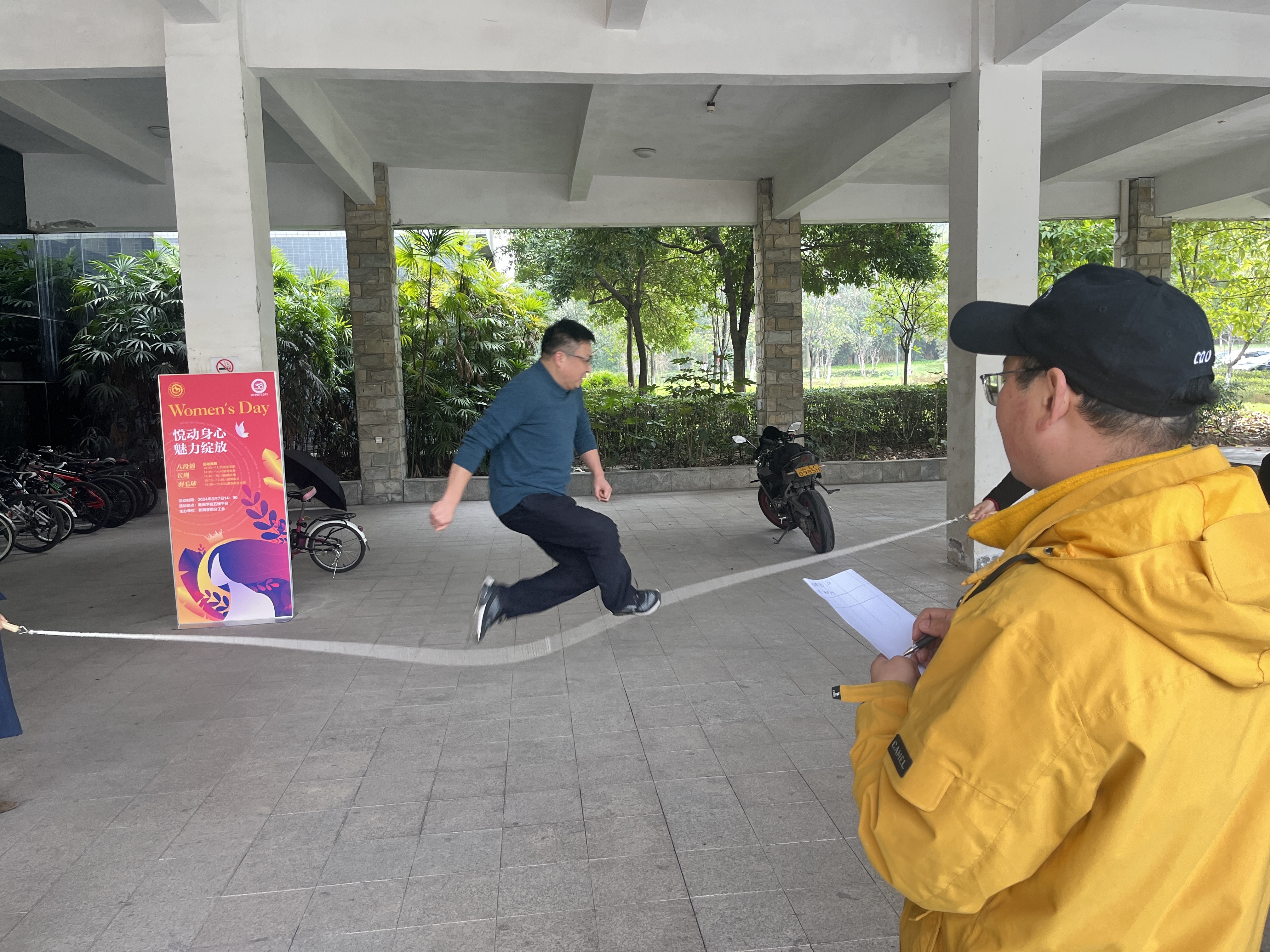 茶歇之后,教职工们被分成“精英队”和“明星队”进行跳绳比赛,获胜“精英队”队员和惜败的“明星队”队员都赢得了奖品。