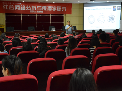 而社会网络分析对传播学的影响是十分显著的。首先,它以直观形象的角度描绘出人类社会的整体结构。其次,它发现人与人之间存在关系的原因。最后,它让人们了解互动方式的影响。同时,彭教授还为同学们阐述了社会网络结构的基本概念、网络的类型和网络分析的统计量。