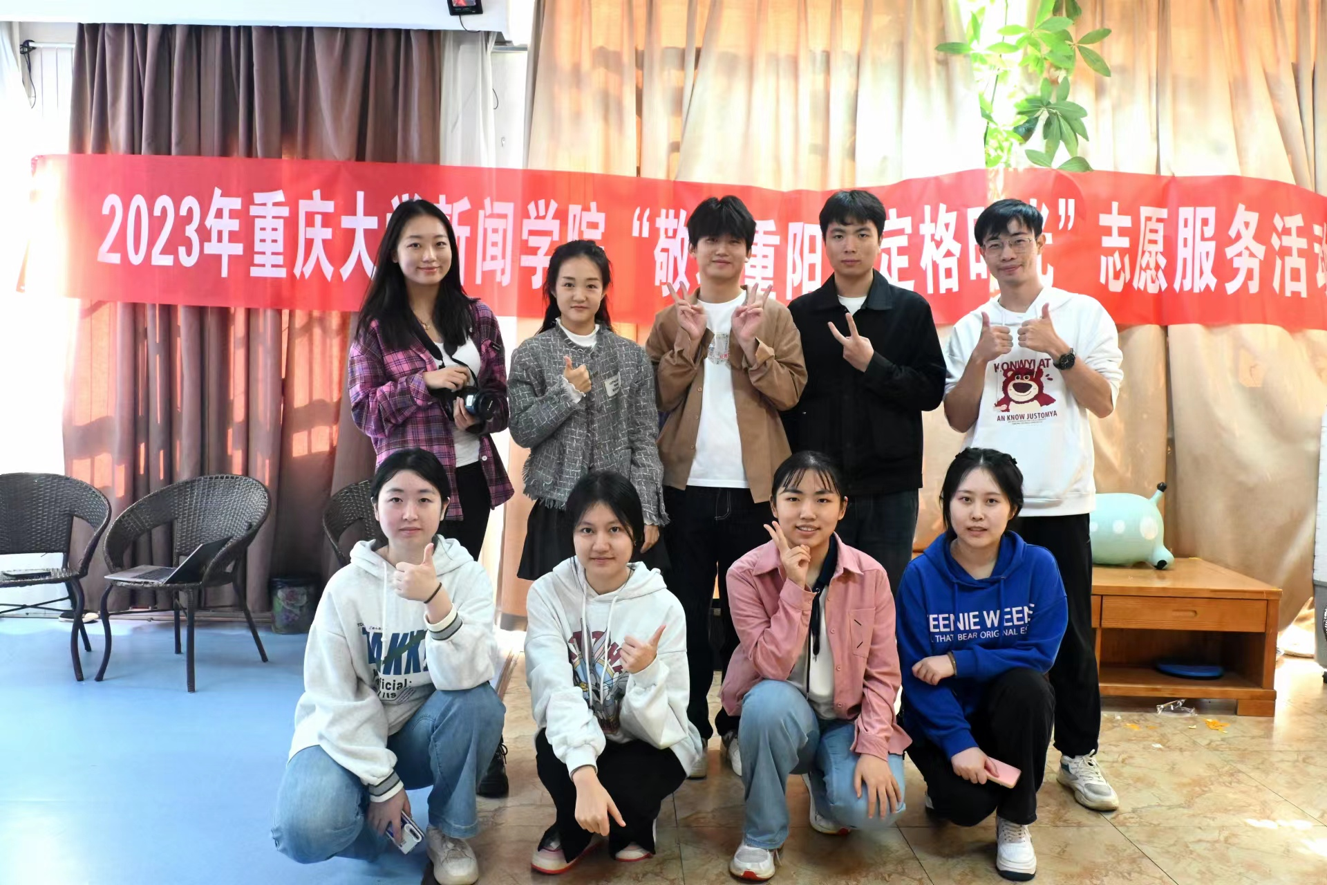 的九位青年志愿者走进了重庆市福禄寿养老院,开展了“敬老重阳,定格时光”志愿服务活动,给老人们送上了温暖又真挚的重阳问候。